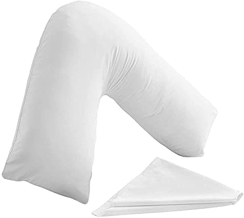 - محتويات العبوة: مخدة واحدة على شكل حرف V بكيس مخدة، لون أبيض