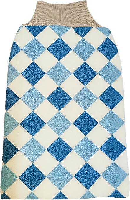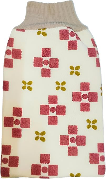- تصميم قفاز التنظيف: قفاز حمام مغربي بخامة منقوشة مربعة باللونين الوردي والأبيض - يوفر تقشيرًا لطيفًا وفعالًا لبشرة ناعمة وصحية.
