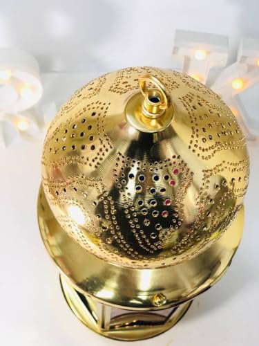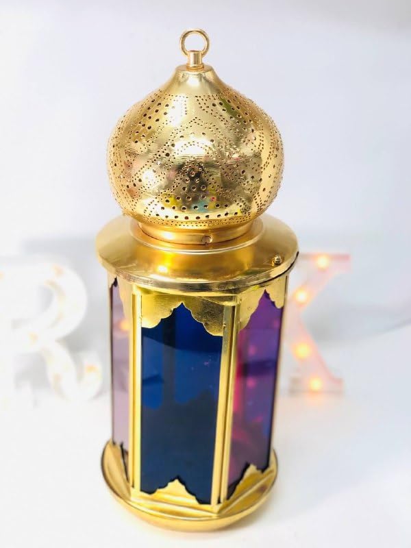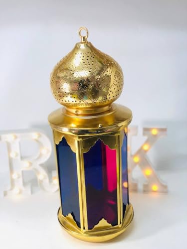 Generic - فانوس مغربي مزخرف بزجاج ملون وإطار معدني ذهبي للإضاءة والديكور