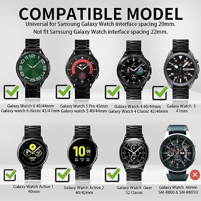 MOROFY - سوار ساعة ذكية من الستانلس ستيل 20 ملم موروفي متوافق مع جالكسي 6 كلاسيك 47 - 43 - 44 - 40 ووتش 5 برو باند 45 - - 4 46 - 42 - - اسود [الساعة غير متضمنة للبالغين الجنسين