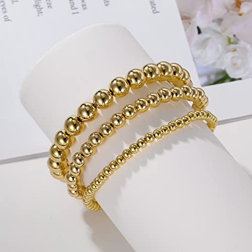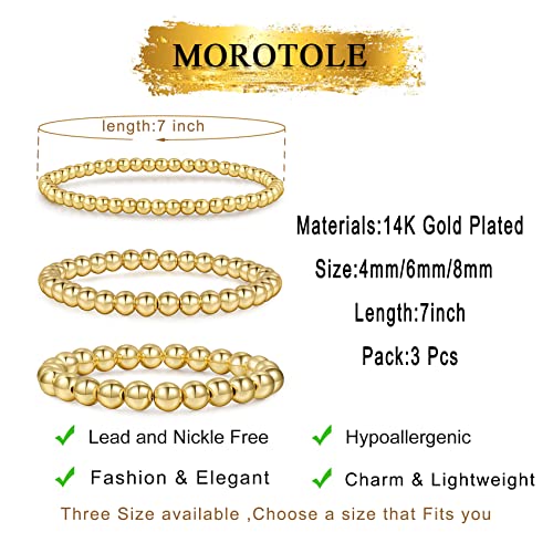 MOROTOLE - مجموعة أساور حريمي ورجالي مطلية بالذهب عيار 14 من 5 قطع، تصميم قابل للتعديل ومضاد للحساسية ويمكن تنسيقه مع قطع أخرى، سوار كوبي مسطح وسميك، خرز ذهبي بنمط بانك، هدايا مجوهرات للنساء والفتيات من موروتول