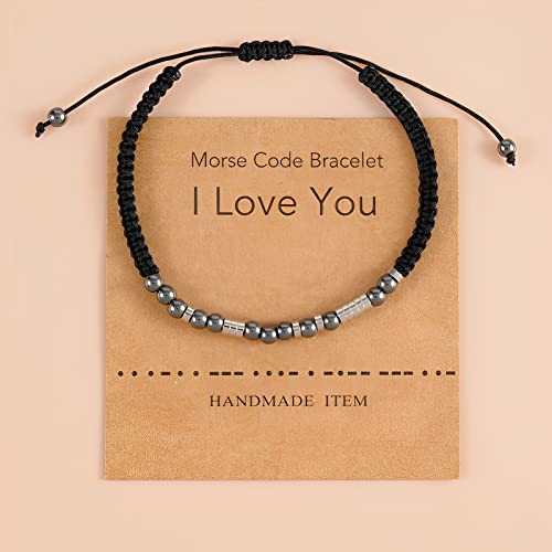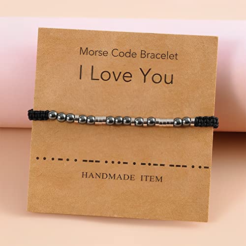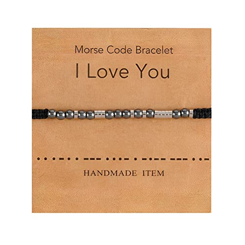 generic - سوار شفرة مورس للنساء، سوار اي لوف يو مورس كود يعني انا احبك، اساور قابلة للتعديل مصنوعة يدويا، هدايا الصداقة وهدايا عيد الحب، حجر الدم
