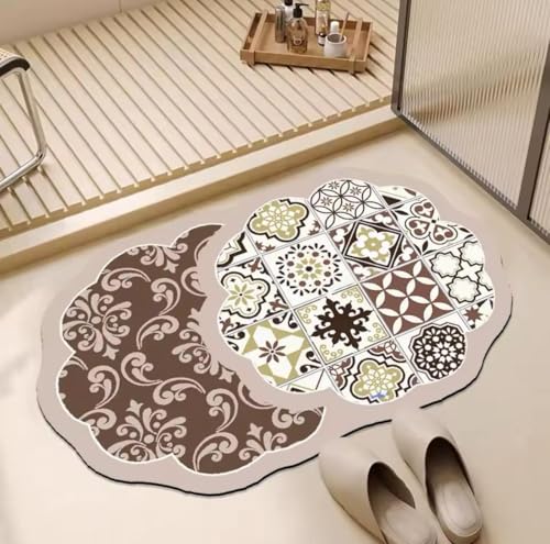 Generic - سجادة ماص من جلد نابا بنمط فسيفساء - سجادة زخرفية سريعة الجفاف ومضادة للانزلاق للحمام والمطبخ والمدخل - 60 × 40 سم (الشكل 1)