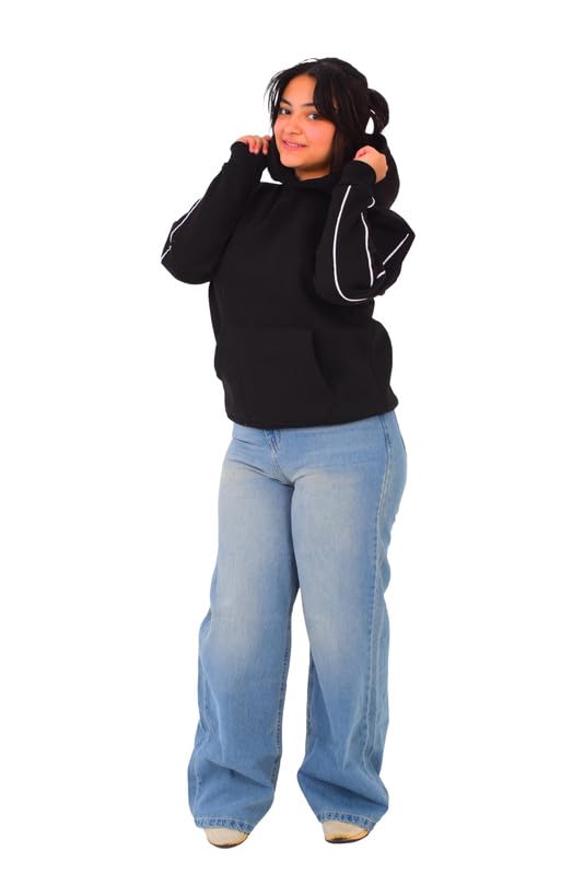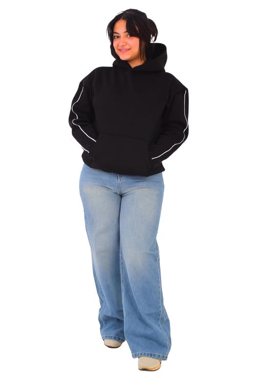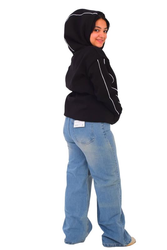Mosca Women's Wear - سويت شيرت بغطاء رأس قطن بتفاصيل خطوط للنساء من موسكا وير