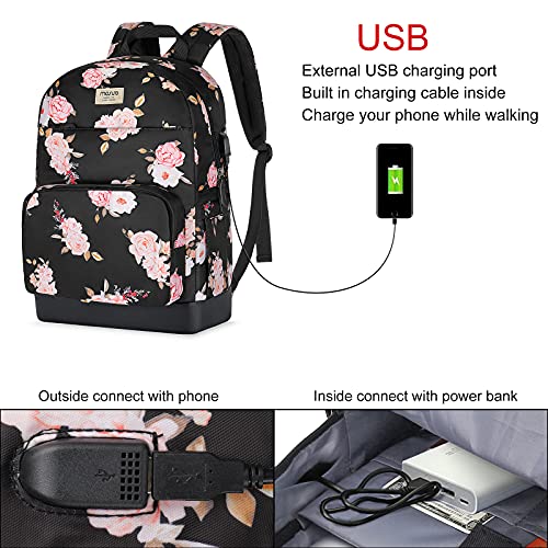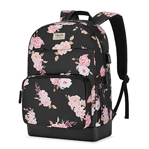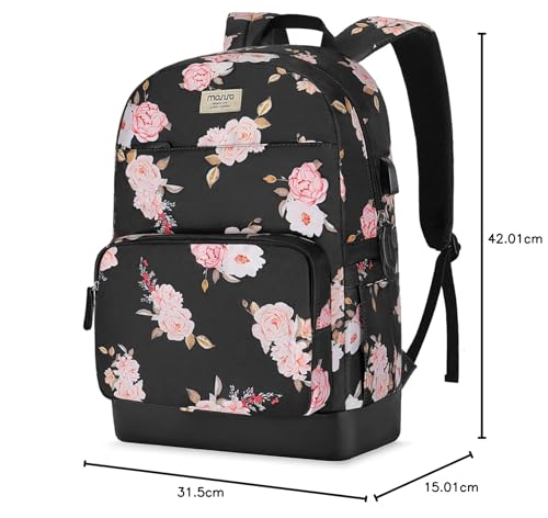 MOSISO - شنطة ظهر للاب توب بشاشة مقاس 15.6-16 بوصة سعة 20 لتر للنساء من موسيسو، كاجوال أنيقة البوليستر مضادة للسرقة مع حزام للأمتعة ومنفذ شحن USB، الفاوانيا للسفر والأعمال، أسود