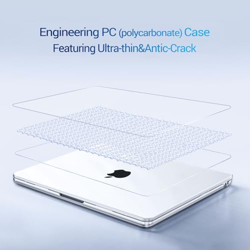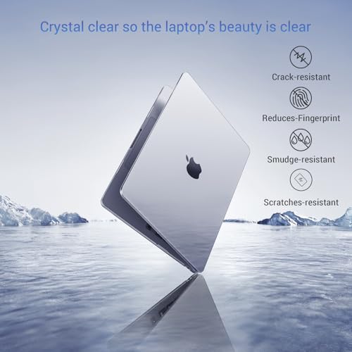 MOSISO - حافظة لاب توب بلاستيكية صلبة واقية متوافقة مع ماك بوك اير 15 بوصة إصدار 2025 و2024 و2023 بشريحة M3 A3114 M2 A2941 وليكويد ريتينا وتحديد هوية باللمس من موسيسو، شفافة كريستالية