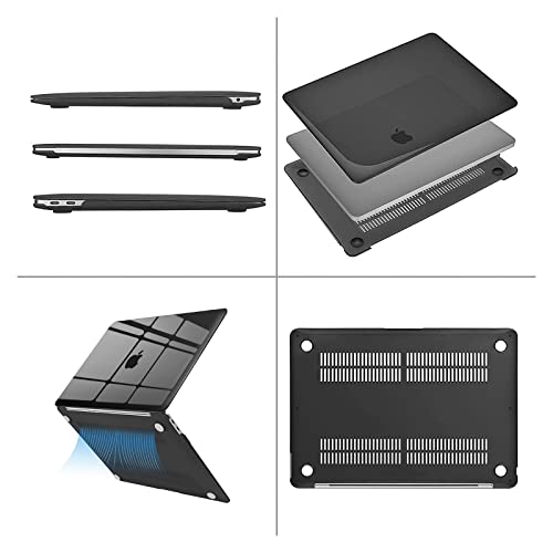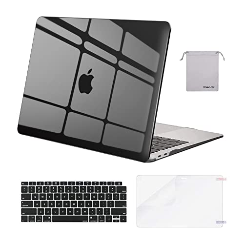 MOSISO - حافظة جهاز ماك بوك اير بشاشة رتينا 13 بوصة - اصدار 2022 2021 2018 موديل A2337 M1 A2179 A1932 مميزة بخاصية التعرف على البصمة صلبة من البلاستيك وغطاء لحماية الكيبورد وشاشة حماية وشنطة - اسود