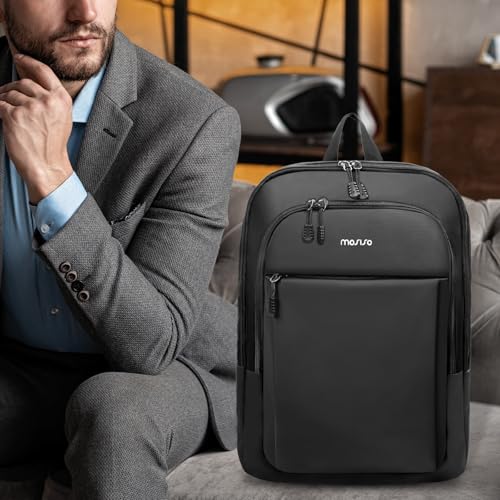 MOSISO - موسيسو شنطة ظهر للابتوب للرجال، شنطة ظهر رفيعة وخفيفة الوزن وصغيرة الحجم للكلية والعمل والمكتب والسفر، 15.6 انش، شنطة لابتوب كاجوال يومية مع حزام للامتعة، اسود