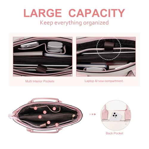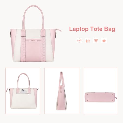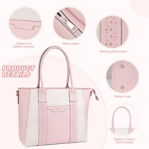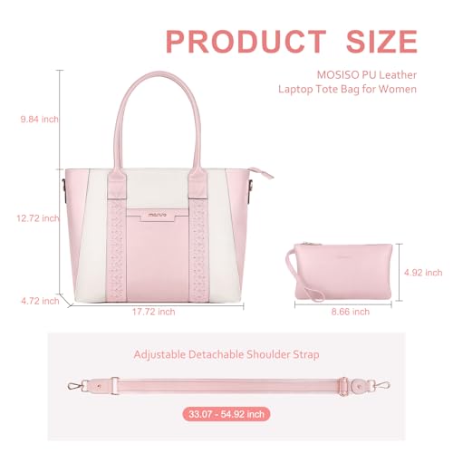 MOSISO - موسيسو شنطة يد كبيرة توت للاب توب، شنطة عمل من جلد البولي يوريثين مع شرائط منسوجة مزدوجة ومحفظة كلاتش، شنطة كتف للكمبيوتر