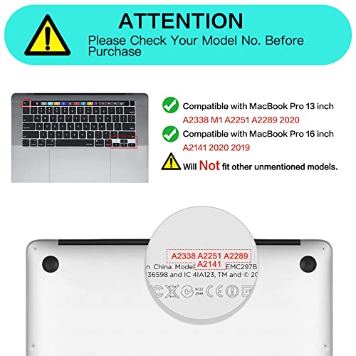 - مصمم ليتوافق مع ماك بوك برو 13 بوصة إصدار 2020 (الموديلات: A2338 M1 A2251 A2289 -- MYD92LL/A ،MYDC2LL/A ، MYD82LL/A ،MYDA2LL/A ، MXK32LL/A ،MXK62LL/A ، MXK52LL/A ،MXK72LL/A ، MWP42LL/A ،MWP72LL/A ، MWP52LL/A ،MWP82LL/A)؛ متوافق مع ماك بوك برو 16 بوصة مع شريط لمس وخاصية التعرف باللمس وشاشة ريتينا إصدار 2020 2019 (الموديل: A2141 -- MVVJ2LL/A، MVVL2LL/A، MVVK2LL/A، MVVM2LL/A).