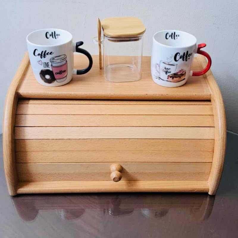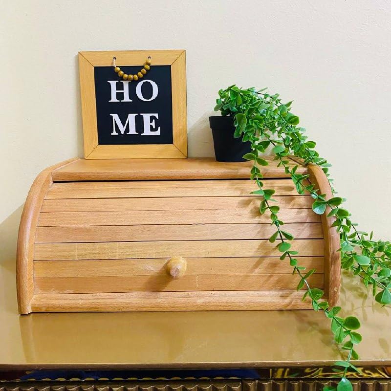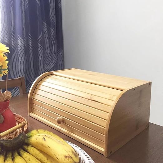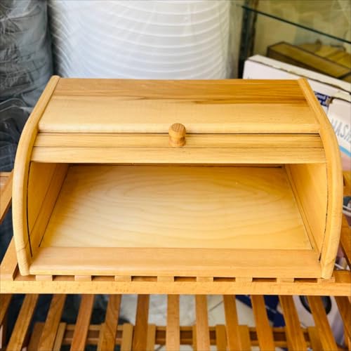 Generic - صندوق خبز خشبي من موسكي، سلة خشبية لحفظ الخبز والطعام 42 سم × 28 سم × 17 سم - لون خشبي
