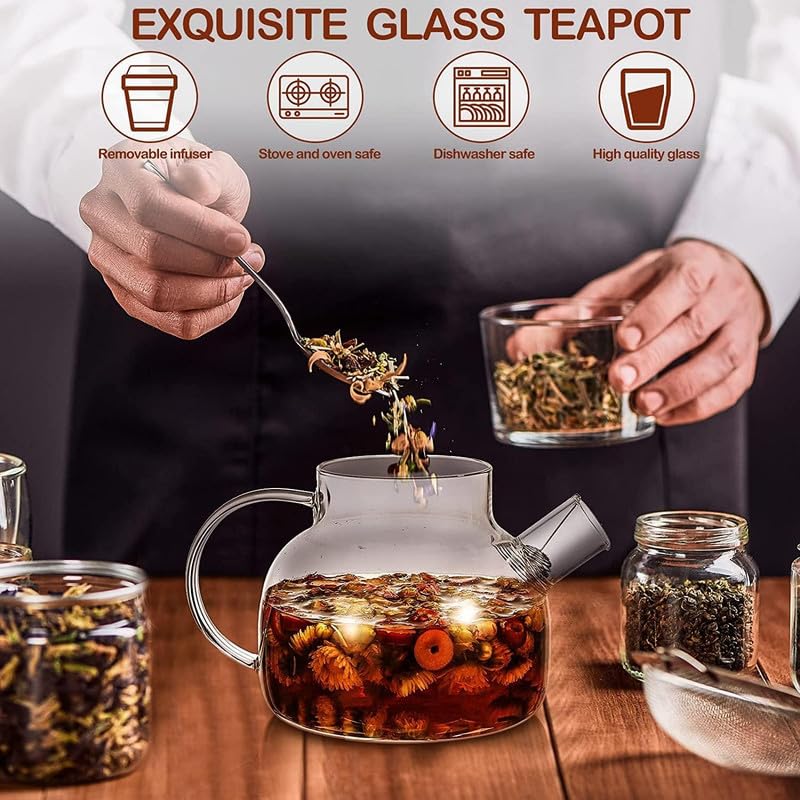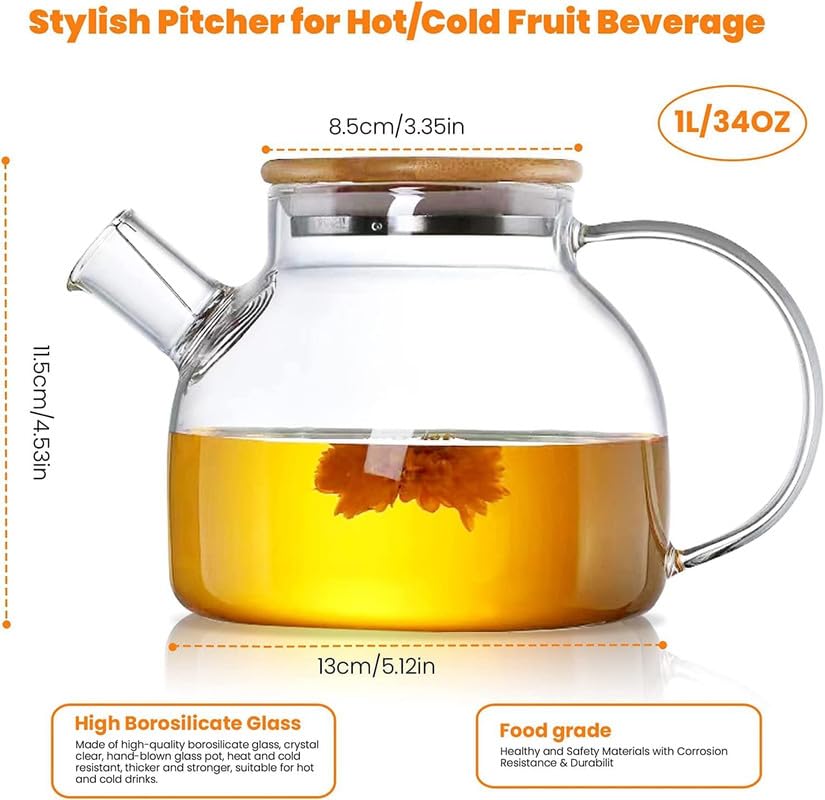 - هدية لمحبي الشاي - إبريق مياه زجاجي للتخلص من السموم آمن للاستخدام على البوتاجاز ويتميز بكونه هدية مثالية لأي محب للشاي مثل الأصدقاء أو المتزوجين حديثًا أو الخريجين أو العائلات أو الأقارب أو الآباء أو لتدلل به نفسك. مناسب لجميع أنواع الشاي، بما في ذلك الشاي السائب والشاي المزهر ونكهات الفاكهة. خيارات السعة الكبيرة 1 لتر، قدمه كهدايا رائعة للأخت، هدايا للزواج، هدايا المطبخ، أدوات صنع الشاي وأدوات المطبخ كهدية.