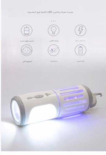 Generic - قاتل البعوض ومصباح يدوي للتخييم في الهواء الطلق والداخلي بطارية 1800 ميلي امبير في الساعة قابلة لاعادة الشحن - 2×1