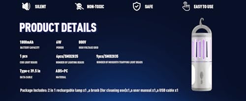 - - **فعال صامت:** - يعمل بهدوء أثناء قتل الحشرات بكفاءة، مما يضمن لك الاسترخاء أو العمل دون تشتيت الانتباه.