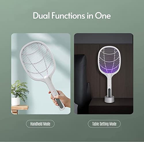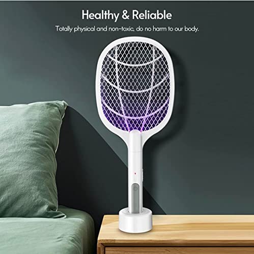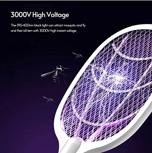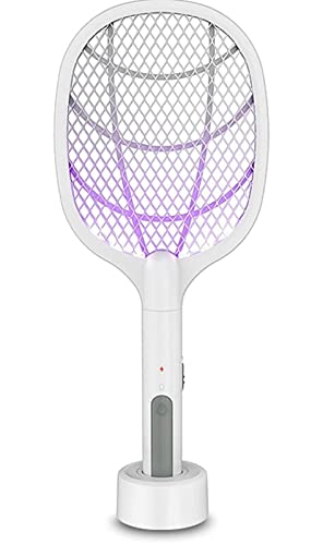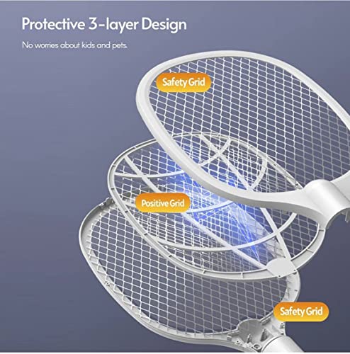 homegeek - مضرب صاعق قاتل للبعوض والحشرات، لاسلكي وقابل لاعادة الشحن بكابل USB واضاءة LED للناموس، يمكن استخدامه بوضعية ثابتة ومتحركة