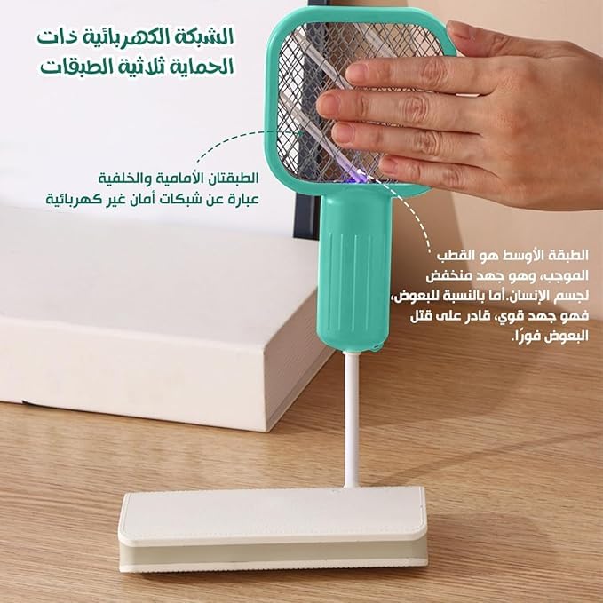 - تصميم مزدوج الوظائف: استخدمه كمصباح قائم لجذب الحشرات وحجزها، أو قم بالتبديل إلى الوضع المحمول باليد كمضرب للذباب للعمل الفوري - حماية مرنة كلما احتجت إليه.