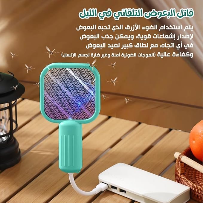 Generic - مصباح قاتل للبعوض ومضرب ذباب كهربائي 2 في 1 قابل لإعادة الشحن بمنفذ USB مع زاوية قابلة للتعديل للاستخدام الداخلي والخارجي لمصيدة الحشرات والذباب والبعوض (أخضر)