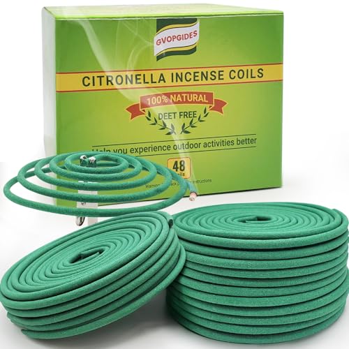 GVOPGIDES - قطع لفائف بخور السترونيلا الطاردة للبعوض في كل صندوق، مصنوعة من نباتات طبيعية، مناسبة للاستخدام الخارجي والداخلي بجوار حمام السباحة وفي الفناء (لفائف السترونيلا 48)