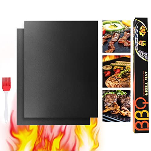 mossFlos - بطانة شواء متينة غير لاصقة قابلة لاعادة الاستعمال مع فرشاة دهن مقاس 15.75×13 بوصة من موس فلوس - اسود - 2 قطعة