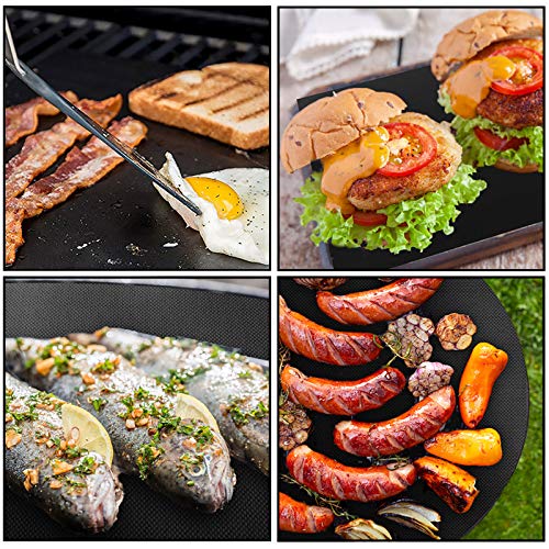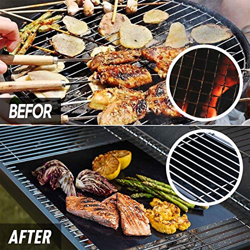 - 🍖【شديد التحمل】: الحجم: 15.75 بوصة × 13 بوصة، السمك: 0.4 ملم. هذا هو ضعف بساط الشواء العادي في السوق -- وأكثر متانة 50 مرة من البساط العادي. يمكن أن يساعدك بساط الشواء هذا على أن تصبح خبيرًا في الشواء، والاستعداد لمفاجأة عائلتك وأصدقائك.