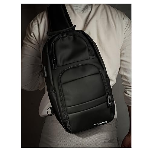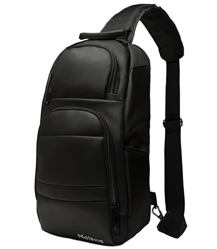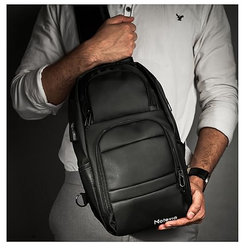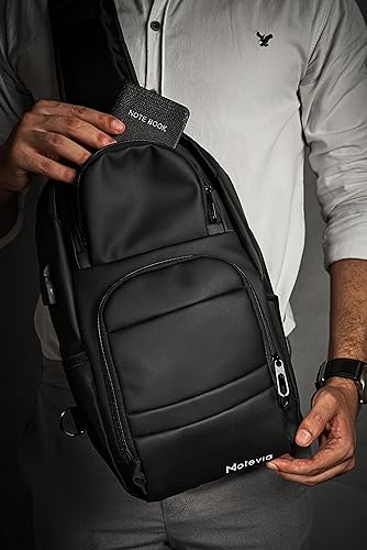 Motevia - شنطة كروس للجنسين من الجلد بحزام مبطن وجيوب أمامية يمكن ارتداؤها كشنطة كتف أو على الصدر موتيفيا مقاس 39 × 24 سم عدد 1