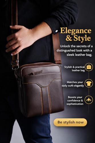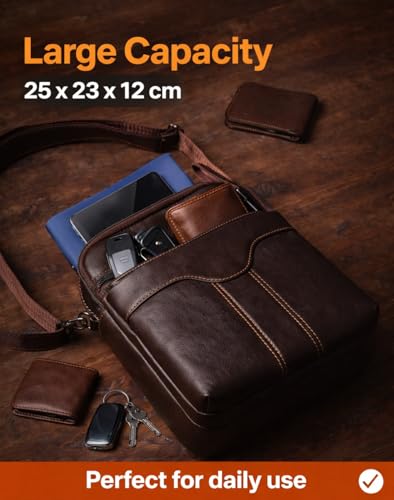 Motevia - شنطة كروس رجالي جلد طبيعي حجم كبير – حقيبة كروس رجالي كبيرة حقائب كتف للرجال من الجلد الطبيعي من Motevia