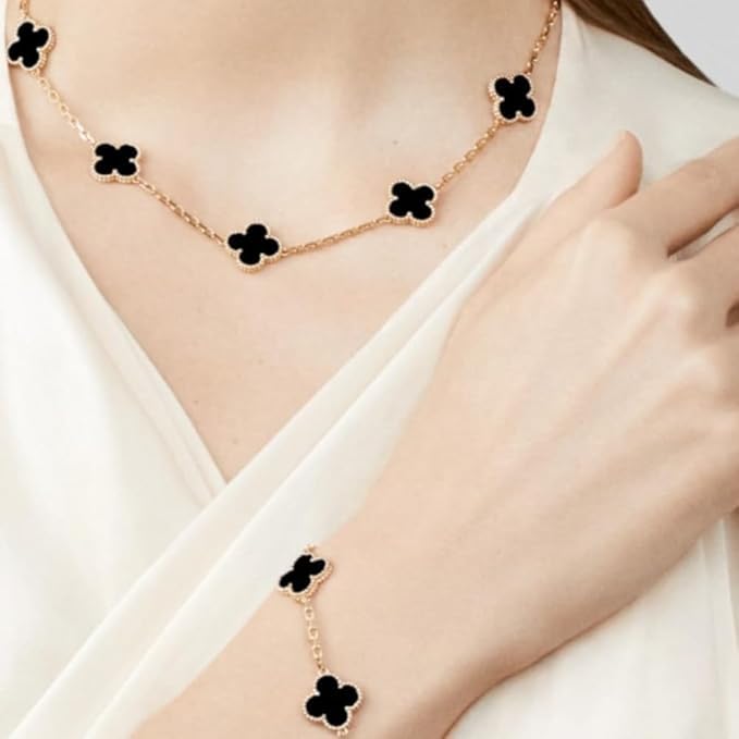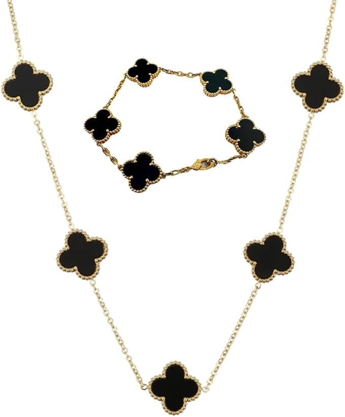 Generic - طقم سوار وسلسلة من عرق اللؤلؤ، مجوهرات سلسلة مطلية بالذهب عيار 18 قيراط