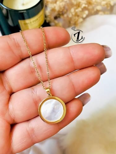Generic - عقد بقلادة دائرية من عرق اللؤلؤ، سلسلة مطلية بالذهب، ذهب عيار 18 قيراط