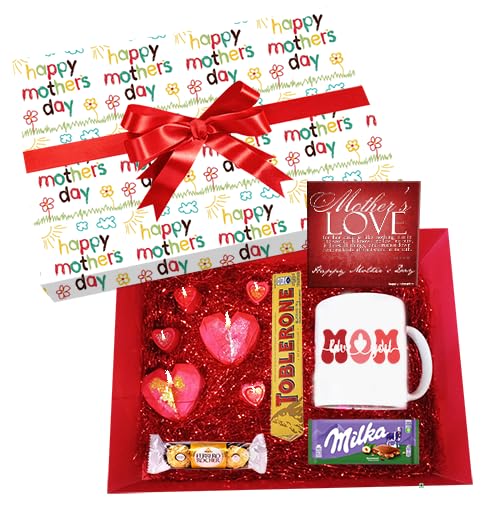 - مجموعة هدايا كاملة لعيد الأم: صندوق هدايا منسق بعناية يتميز بكوب "MOM" مزخرف، شوكولاتة فاخرة بما في ذلك توبليرون وميلكا، يتم تقديمها في غلاف احتفالي بطابع عيد الأم مع شريط أحمر