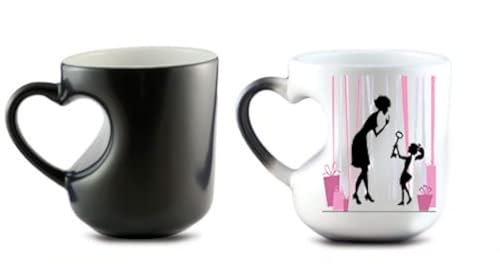 مج سحري لعيد الأم بيد على شكل قلب -va10، بورسلين، أبيض