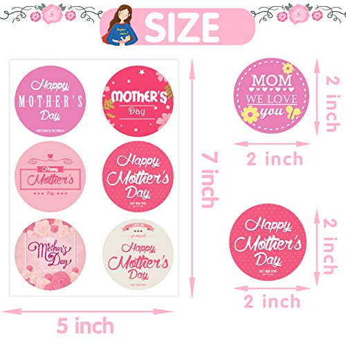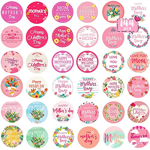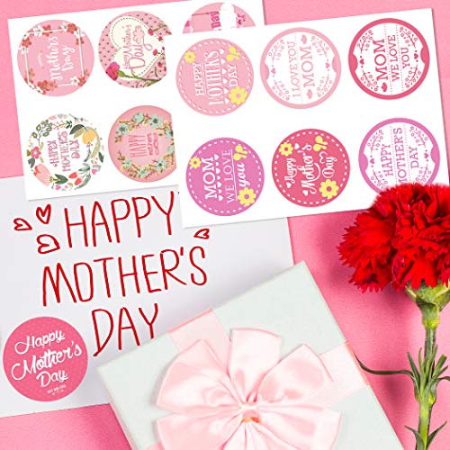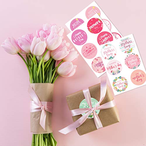 Joy Bang - ملصقات عيد أم سعيد، ملصقات عيد أم بتصميم مستدير، ملصقات عيد أم سعيد كبيرة لتزيين بطاقات الهدايا من جوي بانج (144 قطعة)