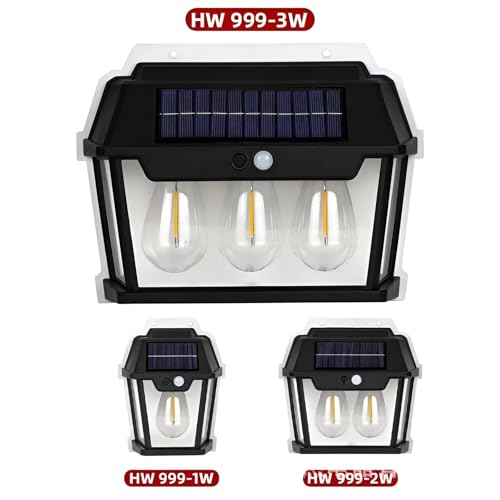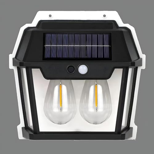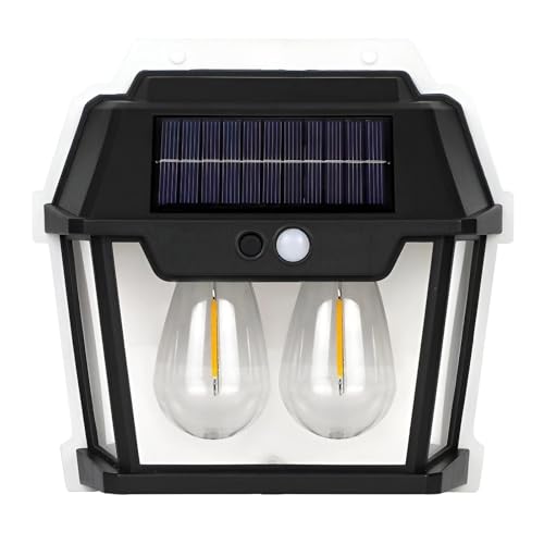 Generic - مصباح بمستشعر حركة - مصباح حائط خارجي اسود يعمل بالطاقة الشمسية مع مصباحين ساطعين، تصميم مقاوم للماء للحديقة والممر والاضاءة الامنية