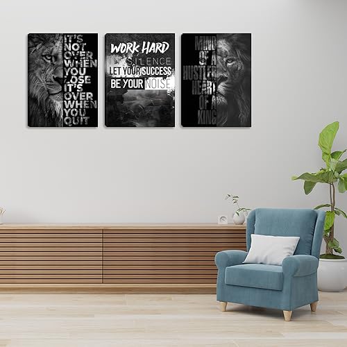 Halioyo - لوحة فنية جدارية قماشية تحفيزية من 3 قطع بوستر اسد ايجابي ملهم باقتباسات نجاح مطبوعة باطار للمنزل والمكتب والغرفة وصالة الالعاب الرياضية ومكان العمل وديكور الحائط 48 انش عرض × 24 ارتفاع