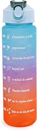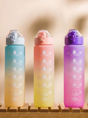 Generic - زجاجة مياه بمؤشر وقت تحفيزي مع شريط شفاطة، 900 مل، مانعة للتسرب، خالية من بيسفينول أ، بلاستيك بولي كربونات، متدرجة الألوان، للجيم والمكتب والمدرسة والسفر