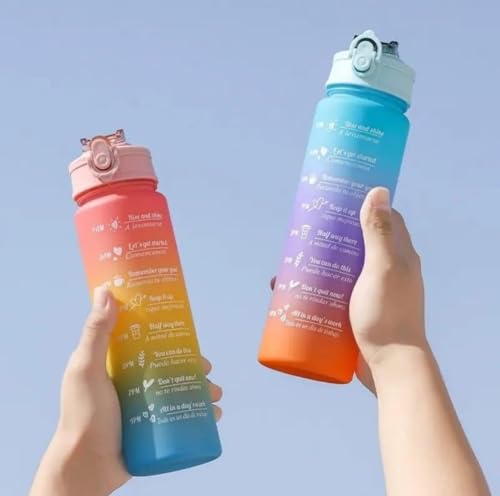 - زجاجة مياه بمؤشر وقت تحفيزي: تحتوي على علامات زمنية واقتباسات تحفيزية لتذكيرك بشرب الماء طوال اليوم، مما يساعدك على تحقيق أهداف الترطيب اليومية والحفاظ على صحتك ولياقتك البدنية