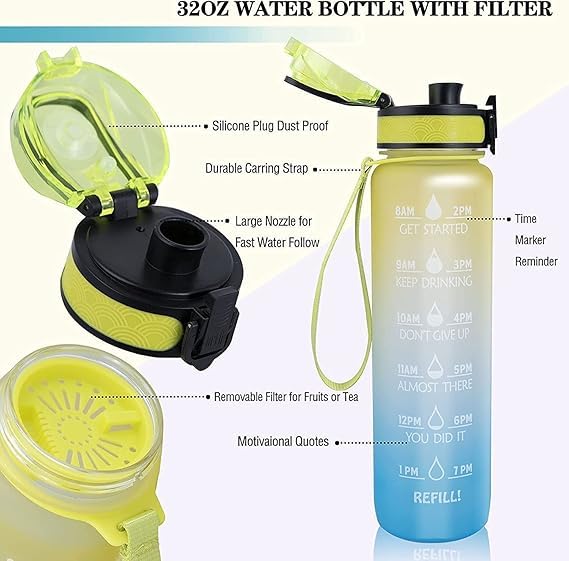 - 【زجاجة مياه مبتكرة مع علامات أوقات للشرب】: مع علامات الوقت، فإن زجاجة المياه هذه رائعة لقياس كمية الماء اليومية وتذكيرك بالبقاء مرتويًا وشرب ما يكفي من الماء طوال اليوم. إنها ضرورية للياقة البدنية بما في ذلك التحكم في فقدان الوزن والصحة العامة 【تصميم عملي حاصل على براءة اختراع】: تم تصميم الغطاء العلوي الحاصل على براءة اختراع بقفل آمن، مما يجعله مقاومًا للغبار والتسرب. ببساطة افتحه بيد واحدة عبر الضغط على الزر. منتج يتميز بماصة من السيليكون تسمح لك بالاستمتاع بالشرب كما أنها مضادة للانسكاب ويمكن إزالتها إذا كنت تريد الشرب مباشرة. تتميز بحزام حمل متين وغطاء. كما أن الفوهة واسعة كفاية لتناسب مكعبات الثلج وتسهيل التنظيف