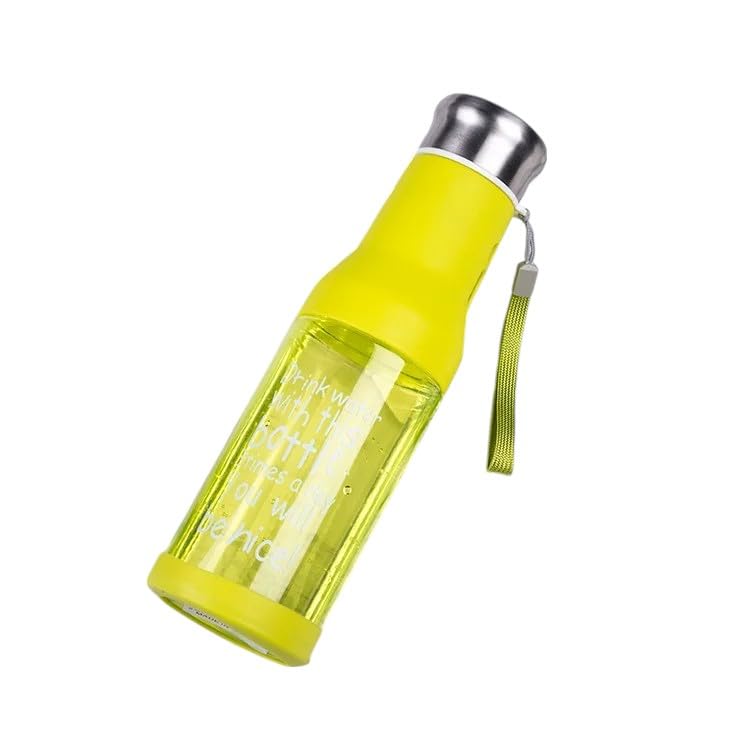 Generic - زجاجة مياه بعبارات تحفيزية وغطاء فولاذي وحمالة، بسعة 600 مل، لون أصفر