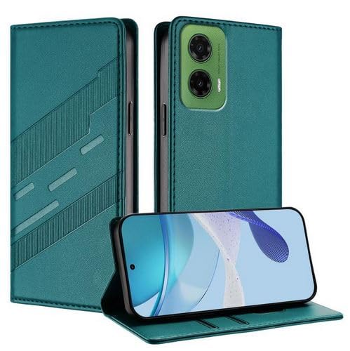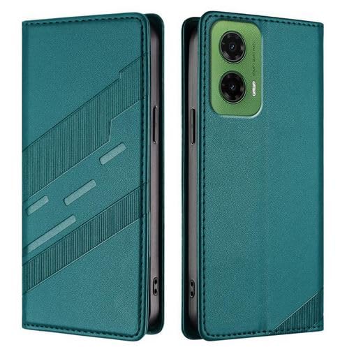 Generic - جراب moto g35 حماية فيليب قابل للطي من الجلد الصناعي مقاوم للصدمات و مزود بحماية للكاميرا مع حامل بطاقات وكروت متوافق مع هاتف موتورولا جي 35 (motorola g35 cover) (green)
