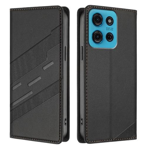 Generic - جراب moto g75 حماية فيليب قابل للطي من الجلد الصناعي مقاوم للصدمات و مزود بحماية للكاميرا مع حامل بطاقات وكروت متوافق مع هاتف موتورولا جي 75 (motorola g75 cover) (black)