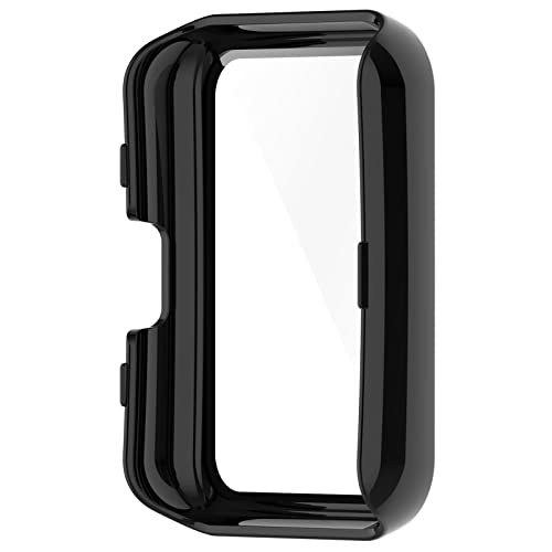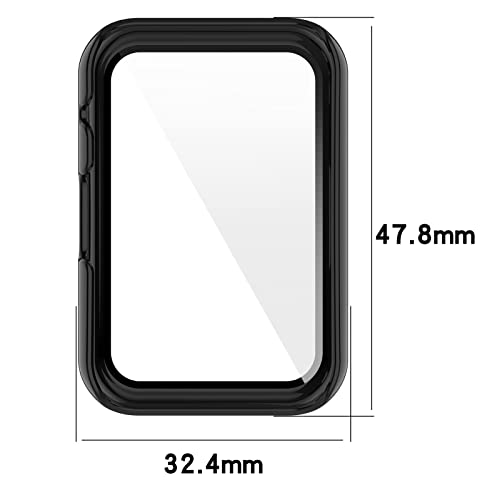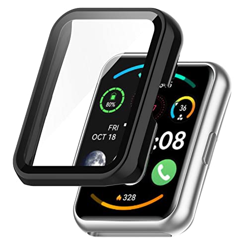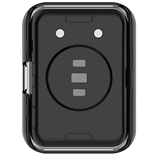 MOTONG - جراب هيكل الساعة من البولي كربونات بتغطية كاملة من الزجاج المقوى متوافق مع هواوي ووتش فيت وفيت نيو من موتونج، أسود