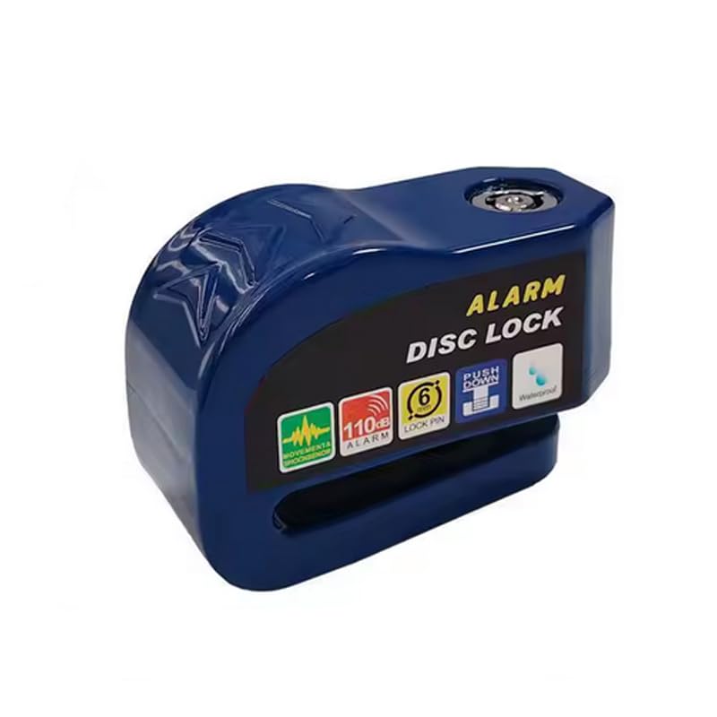 Generic - قفل قرص بخاصية انذار للموتوسيكلات، مضاد للسرقة، مقاوم للماء، صوت انذار بقوة 110 ديسيبل، قفل قرص لتامين عجلات الموتوسيكلات والسكوتر (لون ازرق) - من كابرمصر 2020