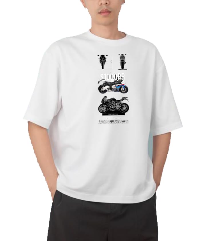 Generic - تيشرت بتصميم مطبوع بنمط موتوسيكلات، لون أبيض، مقاس 5