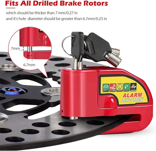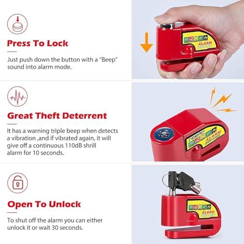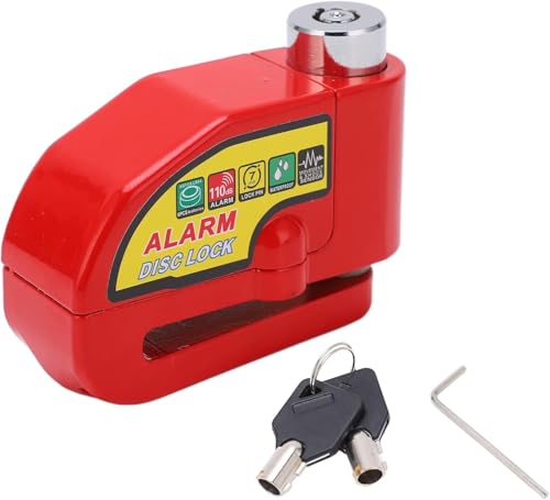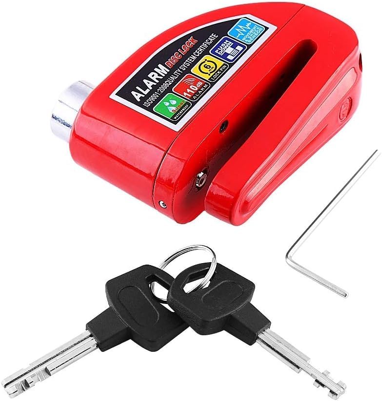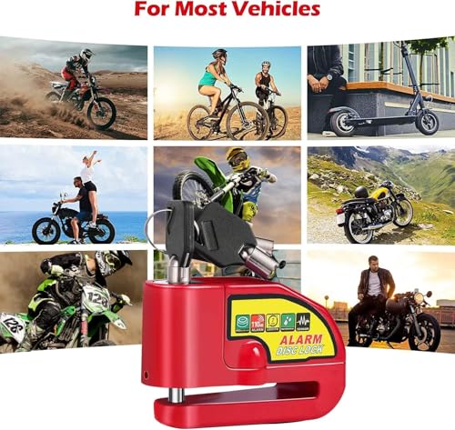 Generic - قفل قرص للموتوسيكلات مع انذار - قفل عجلة الفرامل مضاد للسرقة ومقاوم للماء مع صوت تنبية عالى للموتوسيكلات والسكوتر والدرجات وغيرها - لون احمر - من كابر تريد