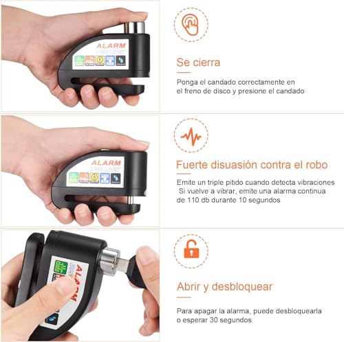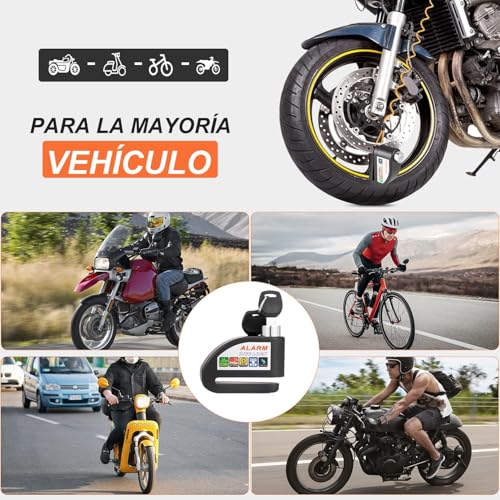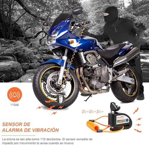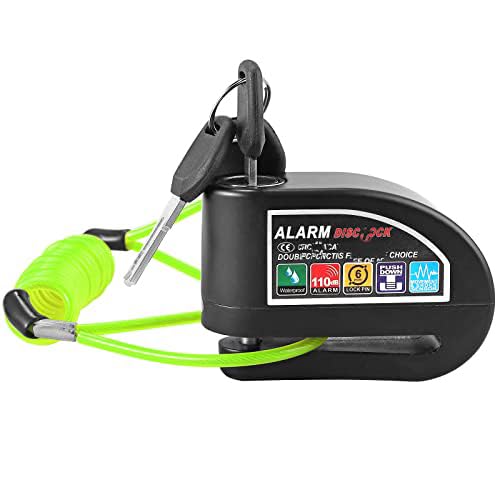 Generic - قفل قرص للموتوسيكلات مع انذار - قفل عجلة الفرامل مضاد للسرقة مع كابل التذكير للموتوسيكلات والسكوتر والدرجات وغيرها - اسود - كابرمصر 2020