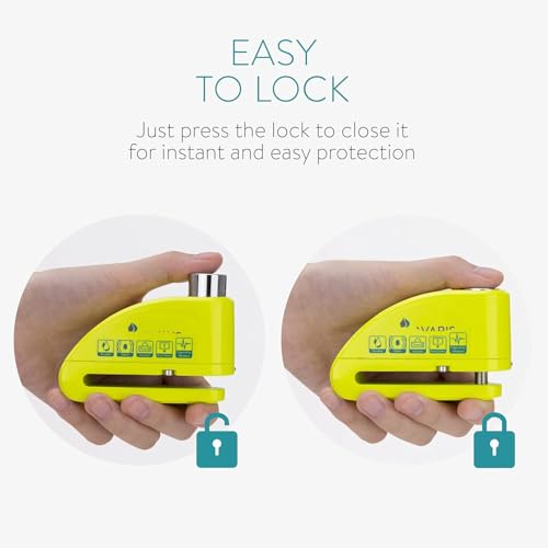 - مانع السرقة: امنع اللصوص المحتملين من سرقة الموتوسيكل باستخدام قفل عجلة فرامل الموتوسيكل . يصدر قفل الدراجة مع انذار صوت عالى إذا حاول شخص ما تحريك الدراجة دون فتحها أولاً. قم بركن دراجتك وأنت مرتاح البال.