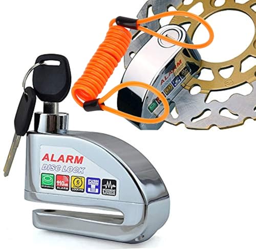 Generic - قفل قرص للموتوسيكلات مع انذار - قفل عجلة الفرامل مضاد للسرقة مع كابل التذكير للموتوسيكلات والسكوتر والدرجات وغيرها - لون سلفر - من كابر تريد