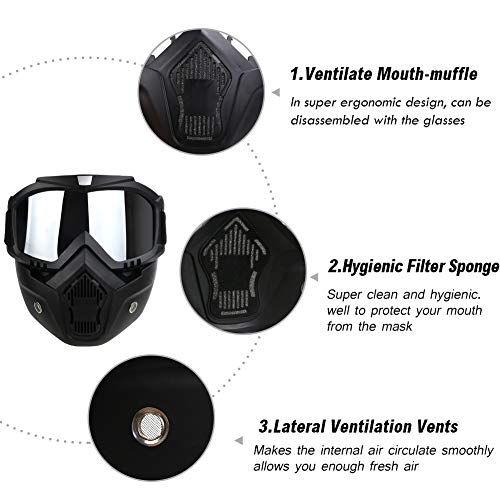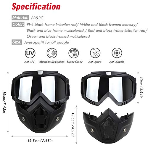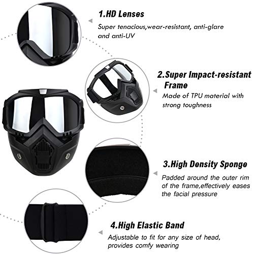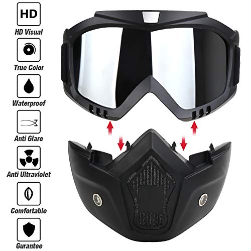 Pleasthome - قناع ونظارة لراكبي الموتوسيكلات، قابل للفصل بتصميم كلاسيكي مفتوح، نظارة شمسية واقية من الأشعة فوق البنفسجية، ماسك مبطن للموتوكروس مع هارلي بالإضافة إلى خوذة (فضي)، بلاستيك، للبالغين الجنسين