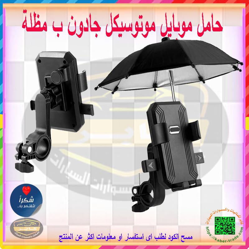 - ✅حامل موبايل موتوسيكل ودرجات نارية جادون مع مظلة للشمس، حامل موبايل عالمي ، مظلة صغيرة للهاتف المحمول، مظلة مضادة للوهج في الهواء الطلق