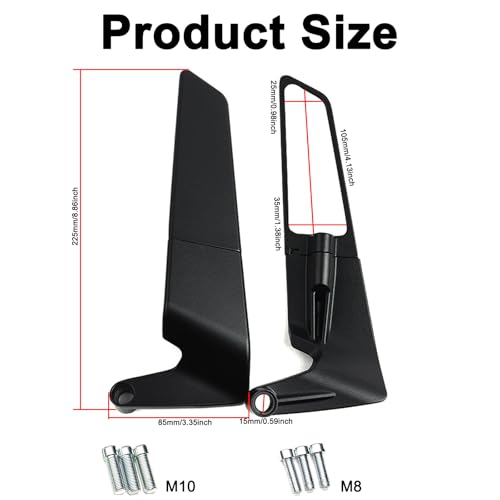 - 【محتويات العبوة】: 2 × مرايات للموتوسيكلات، مجموعة من ملحقات التثبيت (تتضمن 6 × مسامير بسن لولبي (8 ملم و10 ملم))، سهلة التركيب للغاية، فقط قم بشدها وفقًا للتركيبات التي نقدمها، لا تتطلب أي تعديل.