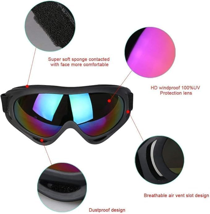 Generic - نظارات حماية للموتوسيكل ، نظارات مقاومة للرياح، نظارات سباق ضد الغبار نظارات تزلج مقاومة للخدش نظارات امان حماية (مقاس وسط - اسود الوان ) - من رنا ستور
